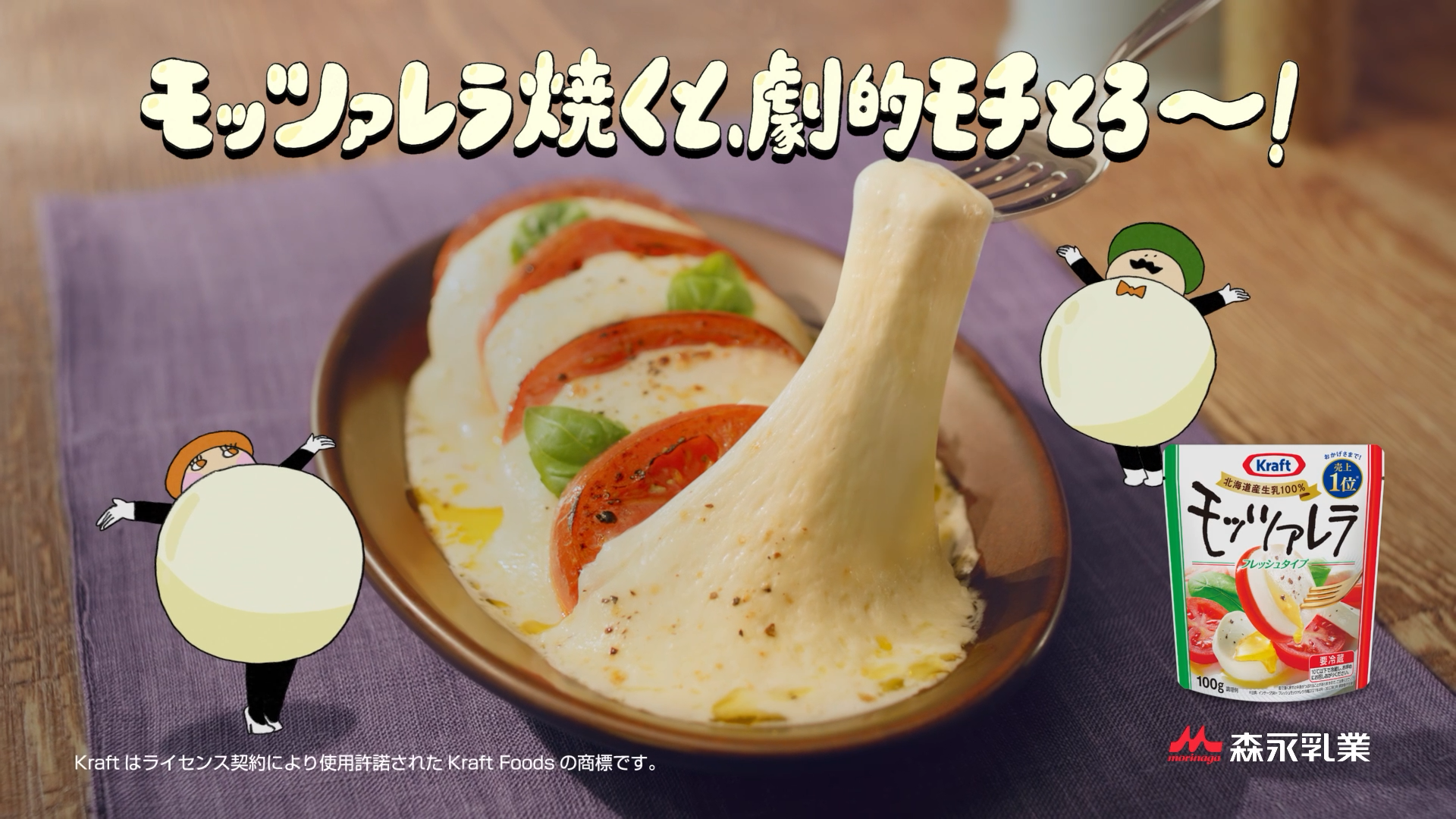 WORKS Kraft Fresh Mozzarella MORINAGA MILK INDUSTRY TV CM WEB CM カプレーゼで食すのが定番のモッツァレラチーズを焼いてみました。 作詞・作曲・アニメ・歌は、アーティストの井上涼さん。 モッツァ大臣とレラ夫人の可愛らしい動きをお楽しみください。 CREDIT Producer: Yuki Honda Director: Yusuke Tabuki